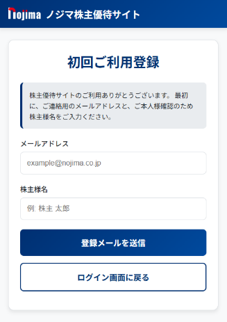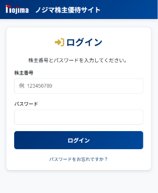 ①「ノジマ株主優待サイト」にログインします。