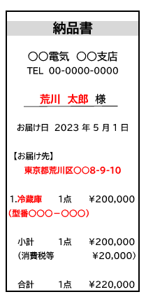 購入金額、内訳明細、宛名、型式、購入年月日、販売店名等が明記されたもの |