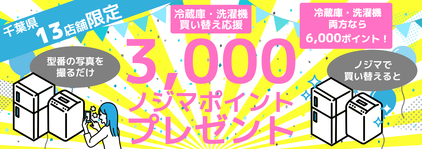 新しい冷蔵庫や洗濯機が手に入るチャンス!写真を撮るだけで、各3,000ノジマポイントをゲット!