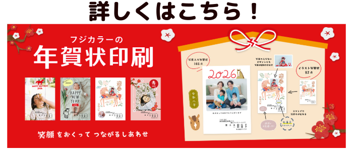 写真やイラストで彩られた豊富なデザインの中から、お好みの年賀状をお選びいただけます。