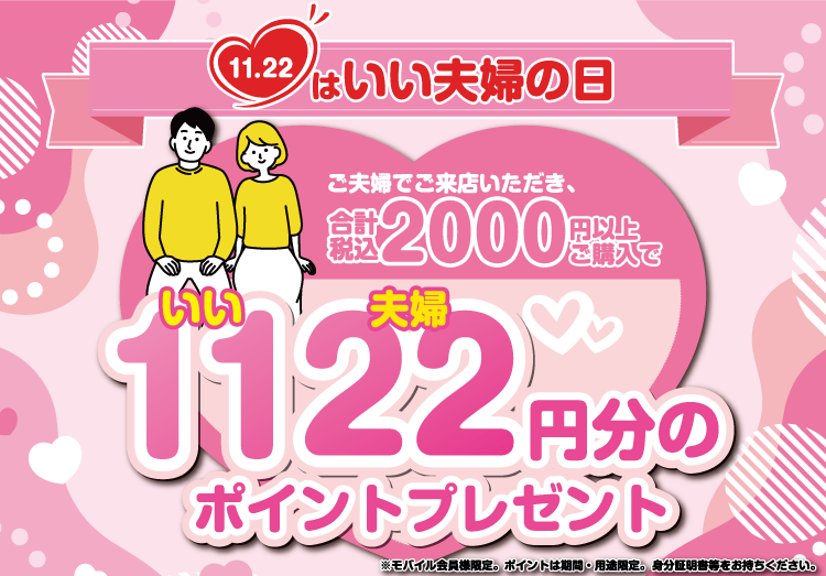 【1122(いい夫婦)円分プレゼント】いい夫婦の日はノジマへ行こう