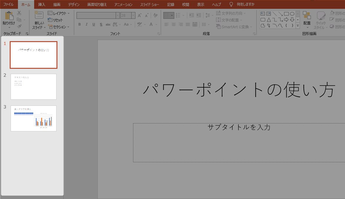 操作感も似ているので、普段ワード・エクセルを使っている方なら、少し使えばすぐにパワーポイントの扱いに慣れることができます。
