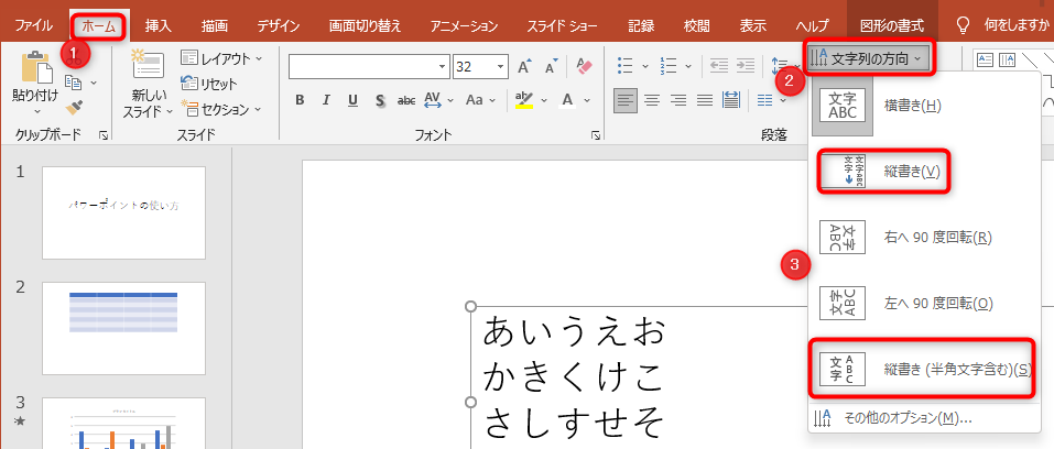 パワーポイントのテキストを縦書きに変更する方法