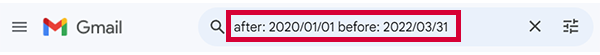 2020年1月1日から2022年3月31日の間のメールを消したい場合は、「after: 2020/01/01 before: 2022/03/31」と入力します。