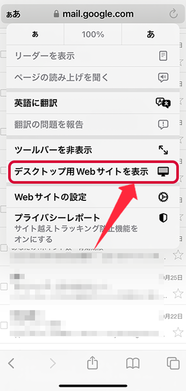 iPhoneスマホでGmailを一括で削除する方法:PC版サイトの開き方