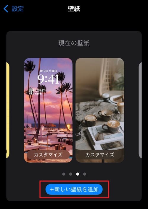 現在使用している壁紙の選択画面が表示されたら、「新しい壁紙を追加」をタップしましょう。