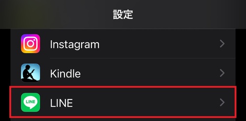 「設定」アプリを開き、画面をスクロールして「LINE」をタップします。