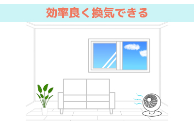 サーキュレーターは、強制的に風を起こして空気の通りを良くするので、換気をするときに便利です。