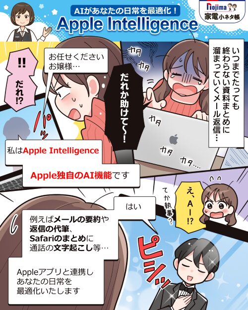 このAIはメールやメモ、SafariなどのApple純正アプリと連携し、日常的なタスクの効率化を実現します。