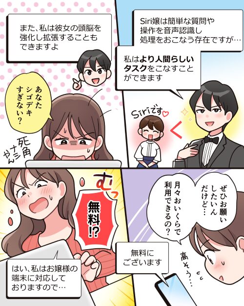 Siriとは、2011年に発売されたiPhone 4Sから実装しているAppleの音声アシスタントです。