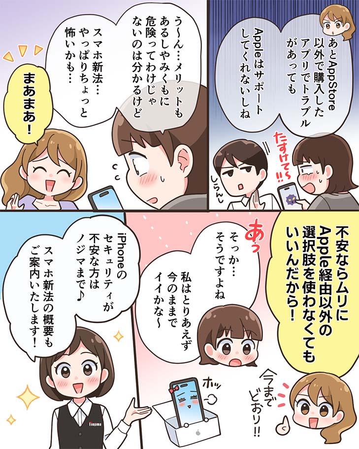市場の活性化や新しい変化に期待ができる一方で、iPhoneユーザーからすれば、その信頼できる安全性やセキュリティの高さが崩壊する不安を感じることもあるでしょう。
