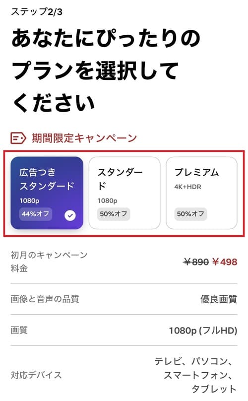 そのため、広告なしで見たい場合は、ストレスなく快適に視聴できる「スタンダード」以上のプランを検討しましょう。