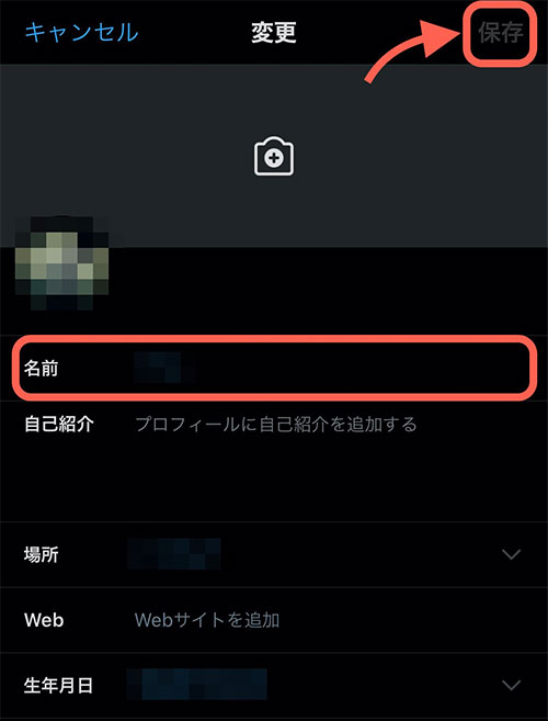 入力が済んだら画面右上の「保存」をタップして、アカウント名の変更完了です。