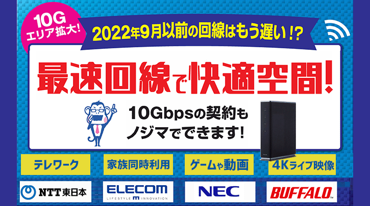 デジタル専門店ノジマでは、最速回線の10Gbpsの契約が可能です。